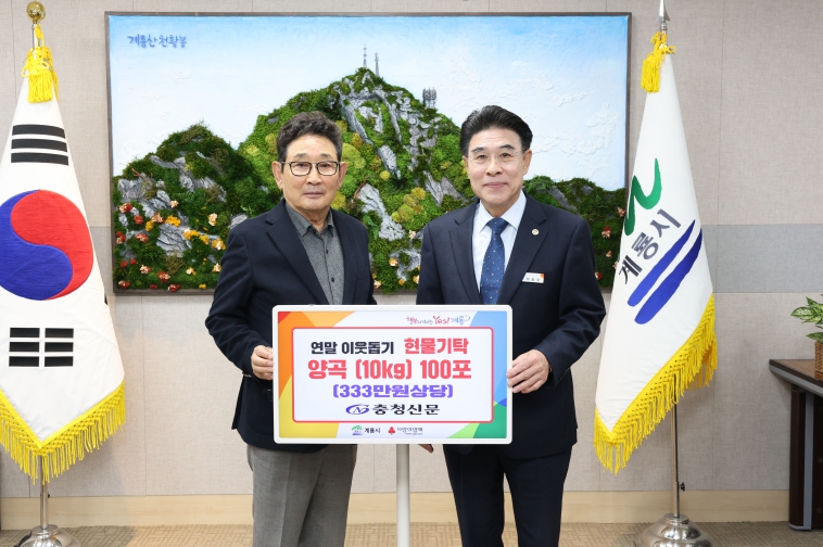 이응우 시장은 “해마다 따뜻한 나눔을 실천해 주시는 충청신문사와 김충헌 사장님께 감사드린다”며 “기탁받은 백미는 필요한 분들에게 소중히 전달하고, 이웃사랑의 가치를 함께 나누겠다”고 화답했다.
