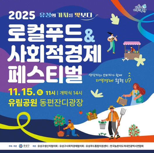 [뉴스다컴] 대전 유성구는 오는 15일 유림공원 동편 잔디광장에서 로컬푸드의 우수성과 사회적경제의 가치를 공유하기 위한 ‘2025 로컬푸드&사회적경제 페스티벌’을 개최한다.