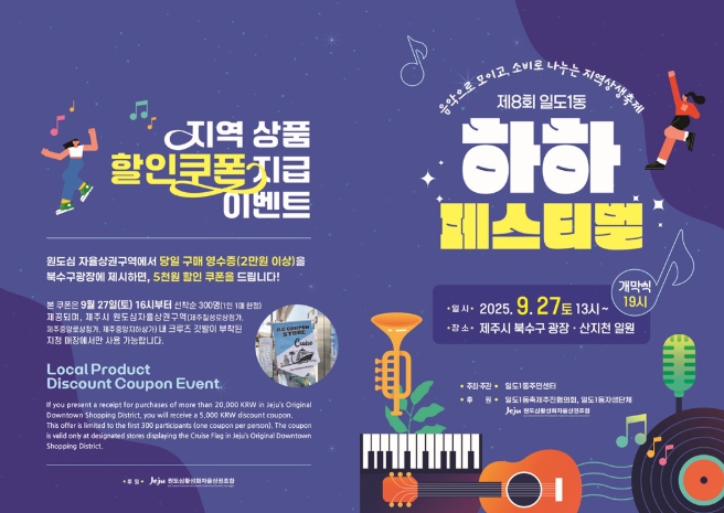 제주시 관계자는 “하하페스티벌은 음악과 웃음으로 가득한 축제일뿐만 아니라 원도심 상권과 함께 성장하고 협력하는 화합의 장”이라며, “시민과 관광객 모두가 화합하고 즐길 수 있는 축제로 기억되길 바란다”고 전했다.