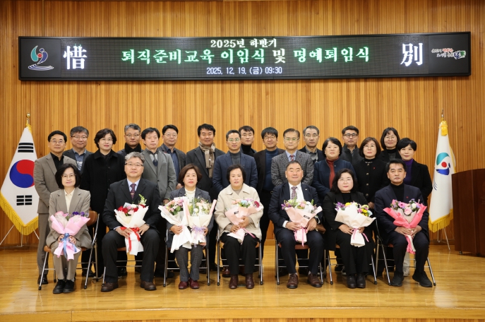 [뉴스다컴] 충북 보은군은 19일 보은군청 대회의실에서 ‘2025년도 하반기 퇴직준비교육 이임식 및 명예퇴임식’을 개최했다.