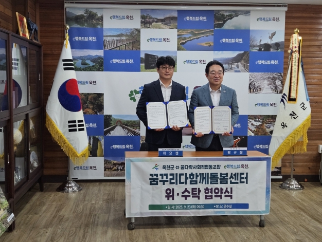 [뉴스다컴] 옥천군이 23일 꿈다락사회적협동조합(대표 이요셉)과 옥천군 다함께돌봄센터 3호점 ‘꿈꾸리다함께돌봄센터’에 대해 위⋅수탁 협약을 체결했다.