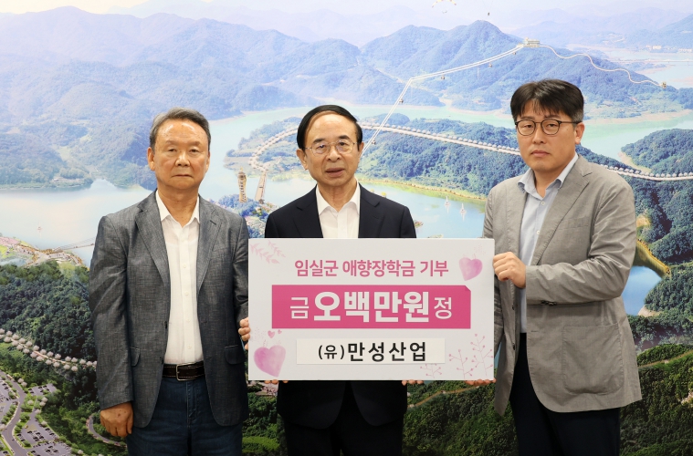 [뉴스다컴] 임실군의 교육 발전을 향한 따뜻한 나눔이 계속 이어지고 있다. (유)만성산업(대표 전인석)이 지난 17일 임실군 애향장학회(이사장 심 민)에 장학금 500만원을 기탁하며 지역 인재들을 향한 변함없는 사랑을 전했다.