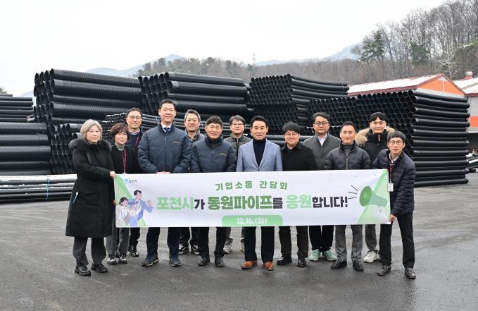 [뉴스다컴] 포천시는 지난 16일 기업 경영 애로를 청취하고 현장의 의견을 수렴하기 위해 신북면에 위치한 동원파이프를 방문했다.