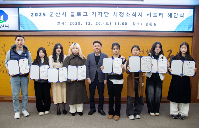 [뉴스다컴] 군산시가 올 한 해 현장 곳곳을 발로 뛰며 생생한 소식을 전한 ‘2025 블로그기자단과 시정소식지 리포터 해단식’을 20일 시청에서 개최했다.