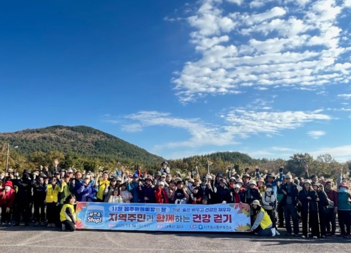 [뉴스다컴] 서귀포시 동부보건소는 11월 음주폐해 예방의 달을 맞아 16일 표선면 대록산 일대에서 ‘지역주민과 함께하는 건강걷기’ 행사를 개최했다.