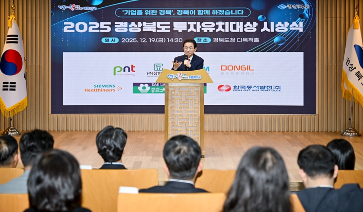 [뉴스다컴] 경상북도는 19일 도청 다목적홀에서 올 한 해 투자유치를 통해 고용 창출 및 지역경제 활성화에 이바지한 기업 및 시군 관계자, 유공 공무원 등이 참석한 가운데 ‘2025년도 경상북도 투자유치대상’시상식을 개최했다.