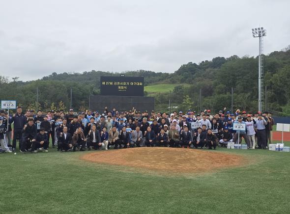 [뉴스다컴] 김천시는 10월 19일 신음근린공원 제1야구장에서 ‘제27회 김천시장기 야구대회’ 개회식을 개최하고 본격적인 대회의 시작을 알렸다.