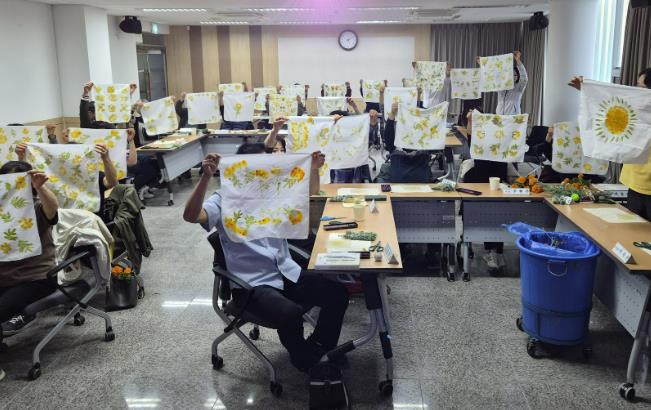 이번 교육은 직장인들의 환경 문제에 대한 이해를 높이고, 일상에서 실천할 수 있는 친환경 활동을 체험해 보는 데 목적을 두고 진행됐다. 천연염색에 대한 강의를 시작으로, 허브 스머지스틱 만들기, 보자기 염색 체험 등 다양한 실습 프로그램이 운영됐다.