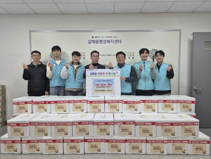 [뉴스다컴] 구리시 갈매동은 지난 11일 행정복지센터에서 ‘사랑의 김장나눔 전달식’을 개최하고, 국민건강보험공단 구리지사가 김장 김치 5kg 50박스를 기탁받아 지역 내 의료취약계층 50가구에 전달하며 지역사회 의료․요양 통합돌봄 안전망 강화에 본격적으로 나섰다.
