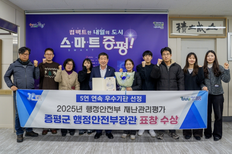 군 관계자는 “5년 연속 최우수기관 선정은 군민의 안전을 최우선 가치로 두고 전 부서가 함께 노력해 온 결과”라며 “앞으로도 선제적 재난관리와 현장 중심 대응을 통해 군민이 안심하고 생활할 수 있는 안전한 증평을 만들어 가겠다”고 밝혔다.