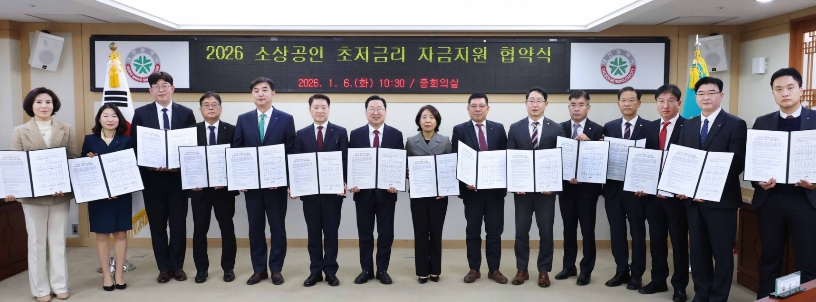 [뉴스다컴] 대전시는 6일 시중 13개 은행과 대전신용보증재단과 함께 2026년 소상공인 초저금리 자금지원 업무협약을 체결했다.