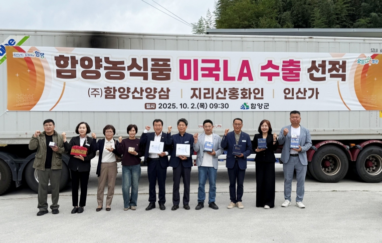 [뉴스다컴] 함양군은 2일 안의면에서 김윤택 함양군의회 의장을 비롯해 수출 관계자 15명이 참석한 가운데 ‘함양 농식품 미국 LA 수출 선적식’을 개최했다.