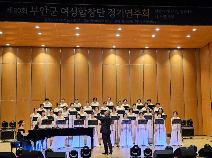 [뉴스다컴] 제20회 부안군 여성합창단 정기연주회가 ‘계절이 지나가는 골목에서 시, 사랑, 추억’이라는 주제로 지난 21일 오후 7시 부안예술회관 2층 공연장에서 100여명이 참석한 가운데 열렸다.