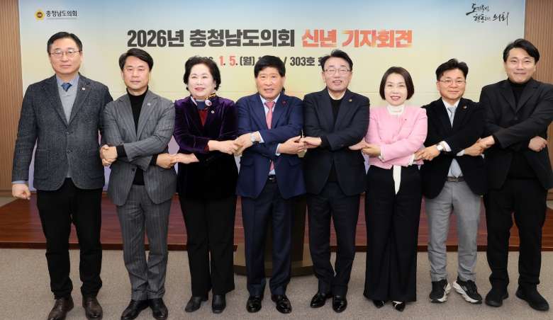 [뉴스다컴] 충남도의회는 5일 의회 대회의실에서 신년 기자회견을 열고 지난해 의정활동 성과와 올해 의회 운영 방향을 공유했다.