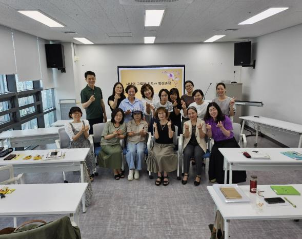 이번 시험은 그림책 지도서로서의 이론적 지식과 실전 역량을 모두 평가하는 방식으로 진행되어, 과정을 수료한 수강생들은 향후 복지관, 요양기관 등에서 시니어를 위한 그림책 읽기 프로그램을 운영할 수 있는 역량을 갖추게 됐다.
