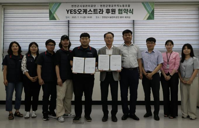 [뉴스다컴] 연천군시설관리공단은 지난 11일 공단에서 연천군청공무직노동조합과 ‘YES오케스트라’ 사업 후원을 위한 협약식을 가졌다.