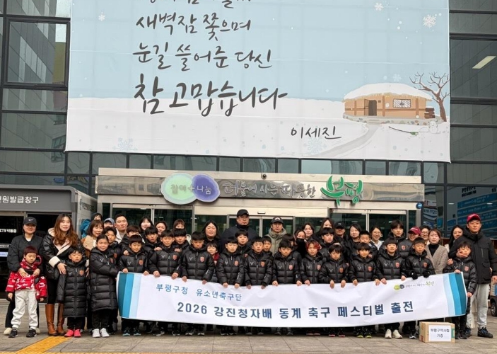 [뉴스다컴] 부평구청 유소년축구단은 전라남도 강진군에서 열리는 ‘2026 강진청자배 동계 축구 페스티벌’ 참가를 앞두고, 5일 구청에서 출정식을 가졌다.
