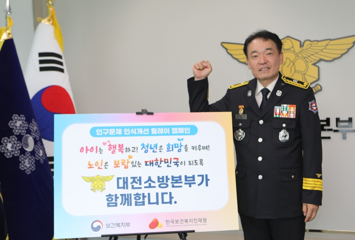 [뉴스다컴] 대전소방본부는 10일, 보건복지부와 한국보건복지인재원이 주관하는 ‘인구문제 인식 개선 릴레이 캠페인’에 동참했다고 밝혔다.