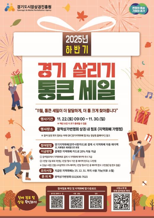 참여 점포와 상권 정보는 행사장 내 현수막에 부착된 QR코드 또는 경기도시장상권진흥원 홈페이지를 통해 확인 가능하다.