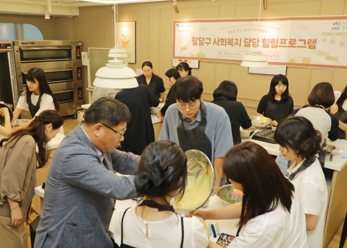 [뉴스다컴] 지난 18일 수원시 팔달구 사회복지업무 담당 공무원 17명이 참여한 가운데, 올해 세 번째 사회복지 담당 공무원 힐링프로그램인 ‘원데이 베이킹클래스’가 진행됐다.