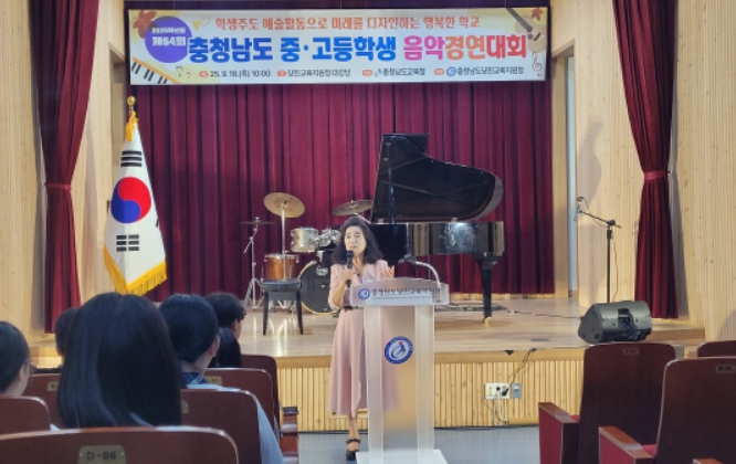 [뉴스다컴] 당진교육지원청은 2025년 9월 18일 오전 10시, 당진교육지원청 대강당에서 ‘2025학년도 제64회 충청남도 중‧고등학생 음악경연대회’를 성황리에 개최했다.