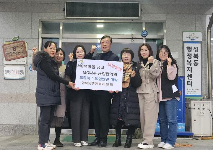 MG나주새마을금고와 MG나주금성산악회는 관내 취약계층의 겨울나기를 돕기 위해 지난 21일 일일 찻집을 운영해 얻은 수익금을 성북동 행정복지센터에 전달했다.