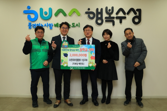 이번 기탁은 올해 4월에 이어 두 번째 후원으로, 백민호 지부장은 매년 수성미래교육재단에 장학금을 꾸준히 후원하고 있다.