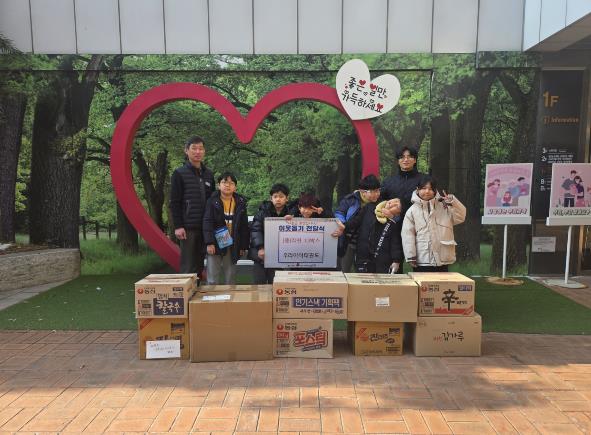 ▲ 경희대우리아이태권도, 나눔 실천... 안성시 공도읍에 라면 기부