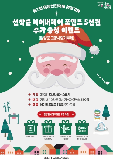 [뉴스다컴] 담양군이 연말을 맞아 5일부터 ‘고향사랑기부제 네이버페이 포인트 증정 이벤트’를 진행한다.