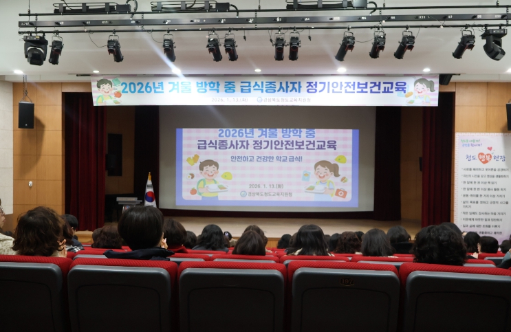 [뉴스다컴] 경상북도청도교육지원청은 1. 13. 청도군 청소년수련관 다목적홀에서 청도·영천 지역 학교 급식종사자 130여 명을 대상으로 방학 중 정기안전보건교육을 실시했다.