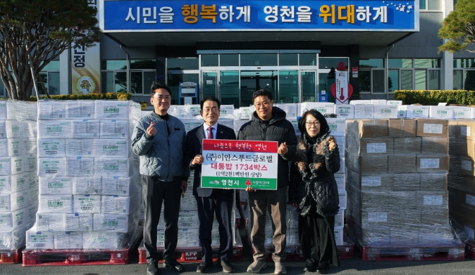 [뉴스다컴] 영천시는 지난 8일 ㈜이안스푸드글로벌이 취약계층 지원을 위해 대나무통밥 1,734박스(1억 2,100만원 상당)를 영천시에 기탁했다고 밝혔다.