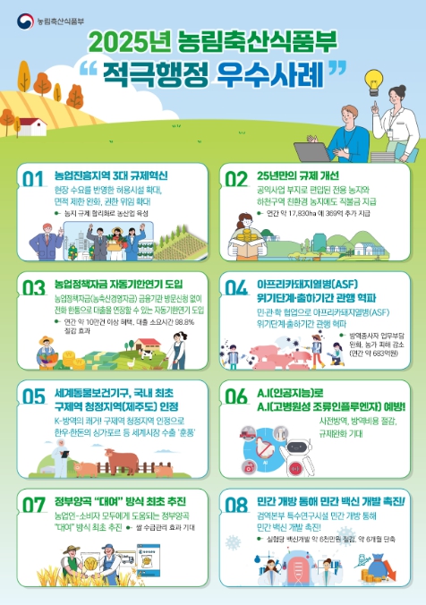 특히 “농업진흥지역 3대 규제혁신” 사례는 국무조정실이 선정하는 ‘하반기 적극행정 핵심 우수사례 10건’에도 포함될 만큼 정책 성과가 대외적으로 인정됐다.