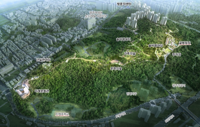 중앙공원은 총 44만8천192㎡ 규모로 ▲공원시설 34만7천625㎡ ▲비 공원시설 10만 567㎡로 구성되며 광주시와 ㈜지파크개발이 공동 시행하고 있다.