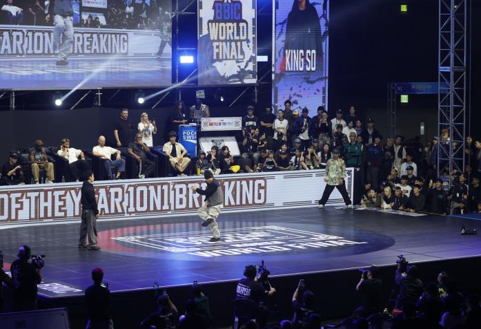 ▲ '2025 배틀오브더이어 월드파이널'에서 브레이킹 아티스트들이 치열한 경연을 펼치고 있다 |