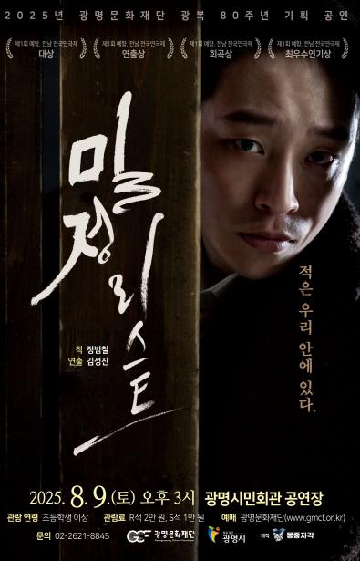 [뉴스다컴] (재)광명문화재단은 광복 80주년을 맞아 기획 공연으로 연극 '밀정리스트'를 오는 8월 9일 광명시민회관 공연장 무대에 올린다.