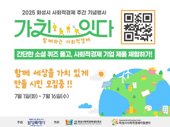 [뉴스다컴] 화성특례시가 사회적경제에 대한 시민 인식을 확산하고 체험 기회를 제공하기 위해 ‘가치,잇다; 함께하는 사회적경제’시민참여 프로그램을 본격 운영한다.