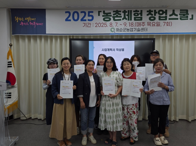 [뉴스다컴] 화순군은 22일 농업기술센터가 주관한 ‘농촌체험 창업스쿨’ 교육이 큰 호응 속에 마무리됐다고 밝혔다.