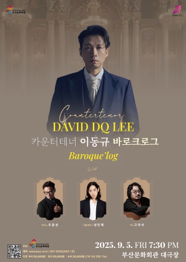 [뉴스다컴] (재)부산문화회관(대표이사 차재근)은 오는 9월 5일 부산문화회관 대극장에서 ‘카운터테너 이동규 '바로크로그' with 조윤성&성민제&고의석’을 선보인다. 이번 무대는 '팬텀싱어 4'로 제2의 전성기를 맞은 카운터테너 이동규가 피아니스트 조윤성, 더블베이시스트 성민제 그리고 기타리스트 고의석이라는 독보적인 아티스트들과 함께 고전과 현대, 클래식과 재즈, 서양과 동양을 아우르는 경계 없는 음악 여행을 선사할 예정이다.