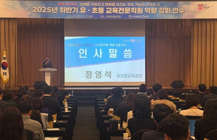 [뉴스다컴] 경북교육청은 29일 경주시에 있는 더케이호텔경주에서 본청과 직속기관․교육지원청 소속 유․초등 교육전문직원 160여 명이 참석한 가운데 ‘2025 하반기 유․초등 교육전문직원 역량 강화 연수’를 개최했다고 밝혔다.