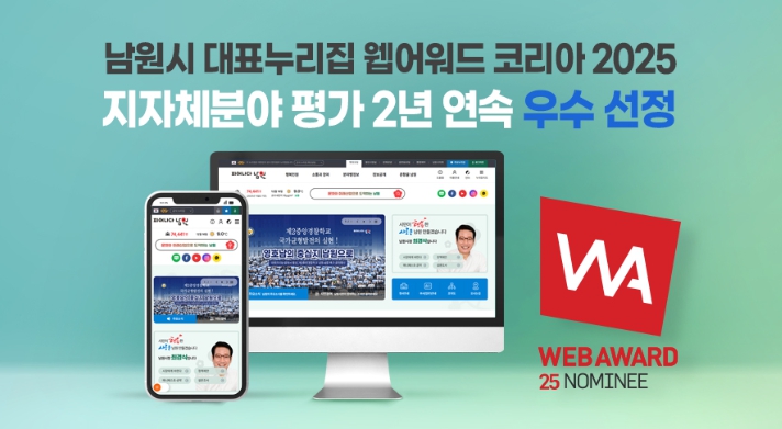 [뉴스다컴] 남원시 대표 누리집이 사단법인 한국인터넷전문가협회가 주최하는 ‘웹어워드 코리아 2025’에서 2년 연속 지자체 분야 우수에 선정됐다.