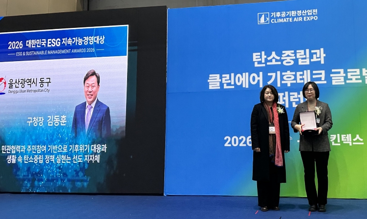 [뉴스다컴] 울산 동구는 환경일보와 한국환경경영학회가 공동으로 주최하는 2026 대한민국 ESG 지속 가능 경영대상에서 전국 19개 대상 수상기관 중 하나로 선정되는 영예를 안았다.