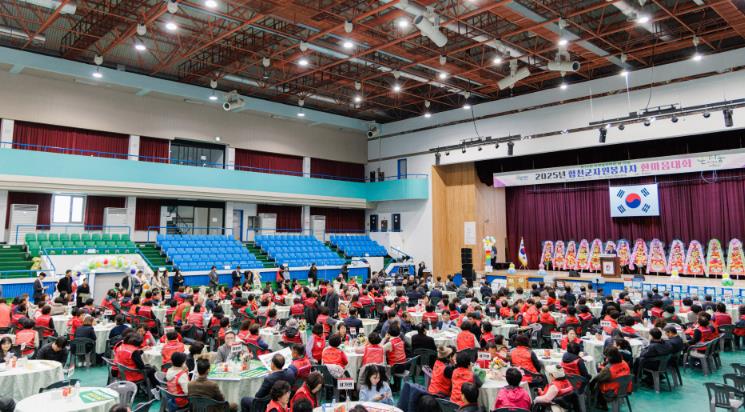[뉴스다컴] 합천군자원봉사협의회는 25일 합천체육관에서 김윤철 합천군수, 정봉훈 군의장을 비롯한 기관·사회단체장과 자원봉사협의회 회원 등 300여 명이 참석한 가운데 ‘2025년 합천군 자원봉사자 한마음대회’를 개최했다.
