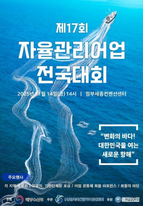 [뉴스다컴] 해양수산부는 11월 14일 정부세종컨벤션센터에서 ‘변화의 바다! 대한민국을 여는 새로운 항해’라는 주제로 ‘제17회 자율관리어업 전국대회’를 개최한다고 밝혔다.