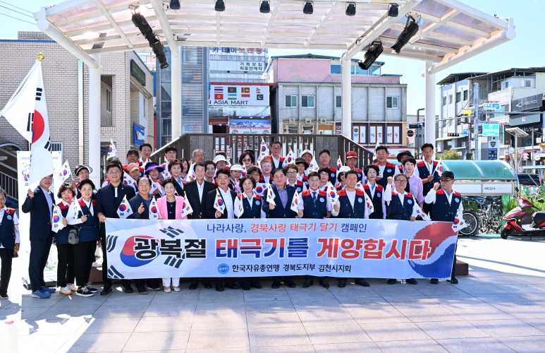 여영각 회장은 “광복 80주년이라는 뜻깊은 날에 모든 김천 시민의 가정에 태극기가 휘날리기를 바라는 마음으로 캠페인을 준비했다. 선열들의 숭고한 정신을 기리고, 자유와 평화를 지켜나가는 일에 시민 모두가 함께해주시길 바란다.”라고 밝혔다.