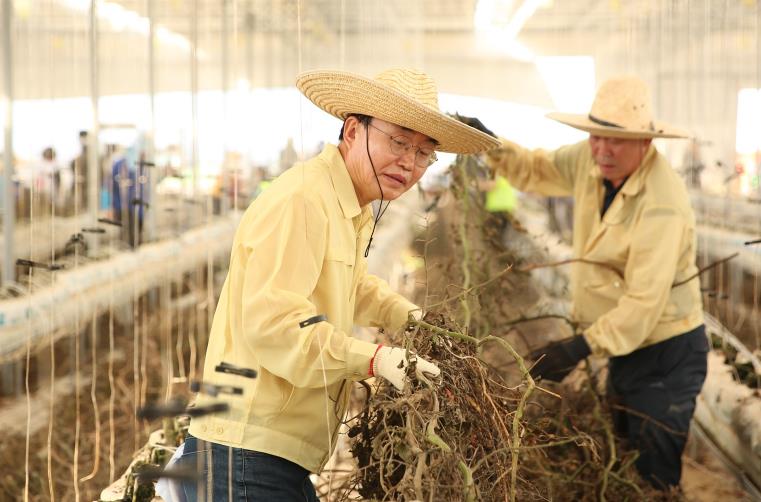 ▲ 나주시가 ‘7월 호우 피해’를 입은 세대에 재난지원금 지급을 완료했다. 사진은 윤병태 나주시장이 집중호우로 피해를 입은 농가에서 복구 작업을 돕고 있는 모습. |