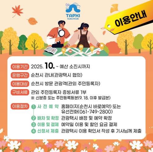 ▲ 순천시, 관광택시 반값 할인으로 가을 여행객 맞이 |