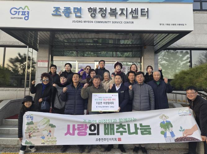 [뉴스다컴] 가평군 조종면 이장협의회와 주민자치회는 17일 조종면행정복지센터에 쌀 700kg을 기탁하며 지역 나눔 활동에 힘을 보탰다.