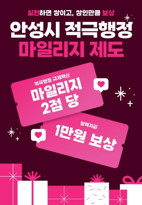 [뉴스다컴] 안성시는 불합리한 규제 개선과 시민 불편 해소를 위한 적극행정 실천 보상을 위해 ‘2026년 적극행정 마일리지 제도’를 운영한다.