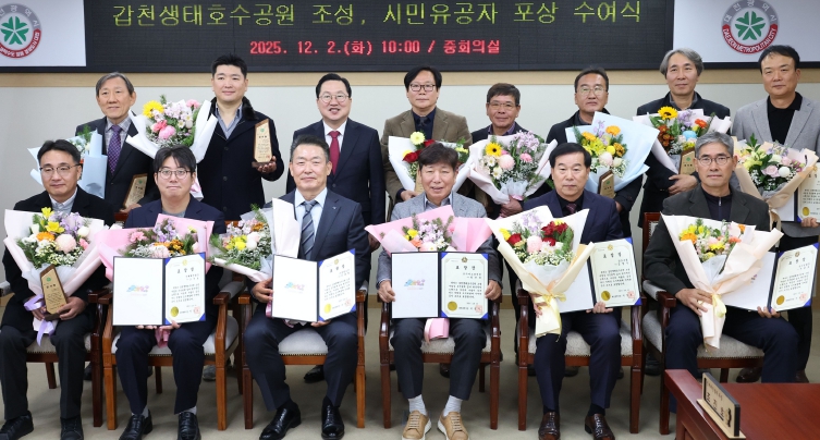 [뉴스다컴] 대전시는 2일 시청 중회의실에서 갑천생태호수공원 조성에 이바지한 공사 관계 유공자에게 호수공원 추진 유공 표창장 및 감사패를 수여했다.