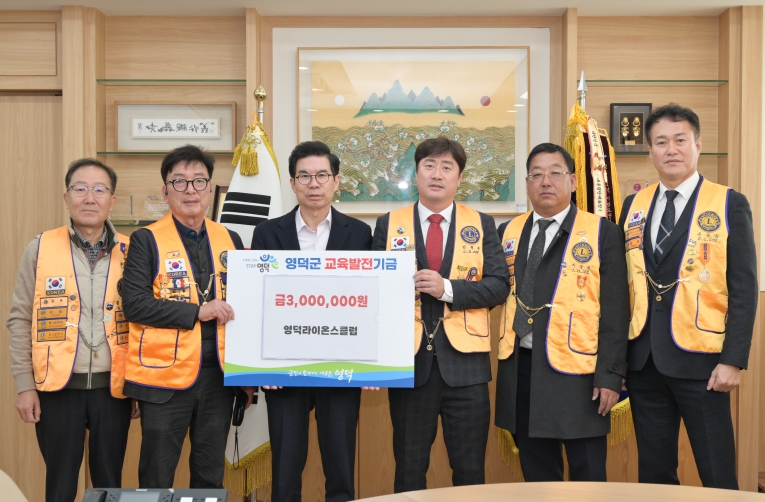 [뉴스다컴] 영덕라이온스클럽 회원들이 지난 2일 우수 인재 양성과 취약계층 지원을 위해 교육발전기금 300만 원과 불우이웃돕기 성금 100만 원을 영덕군에 기탁했다.